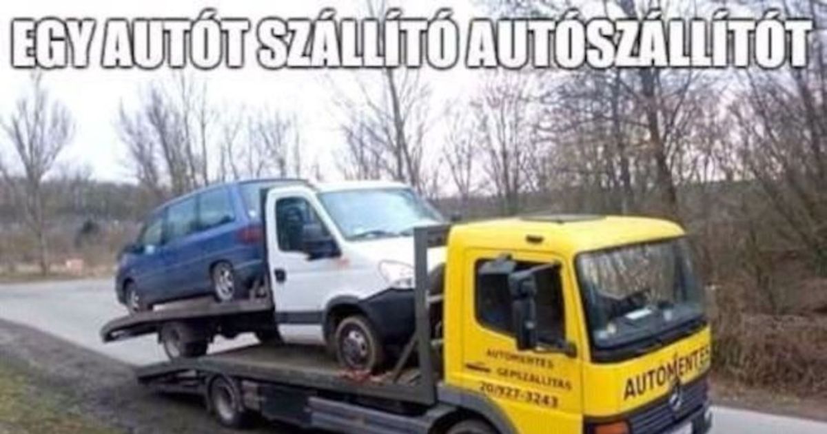 Egy autót szállító autószállítót szállító szállítóautó