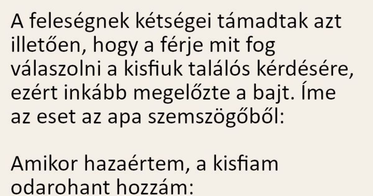 A feleségnek kétségei támadtak, hogy a férje mit fog válaszolni a kisfiuk találós kérdésére