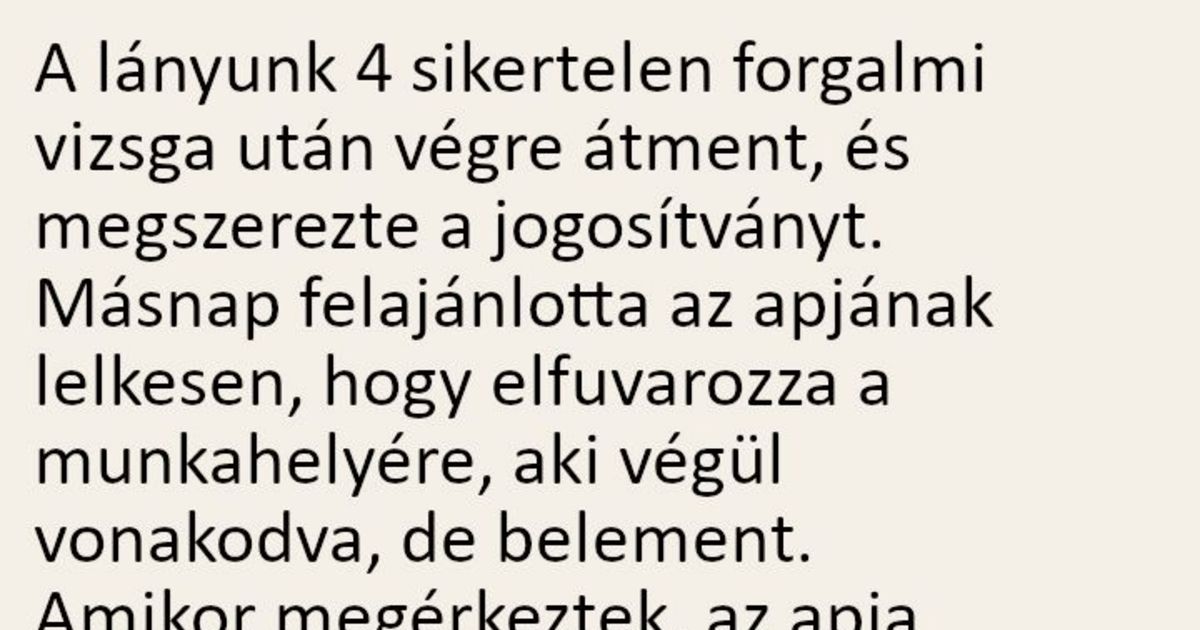 A lányunk 4 sikertelen forgalmi vizsga után végre átment