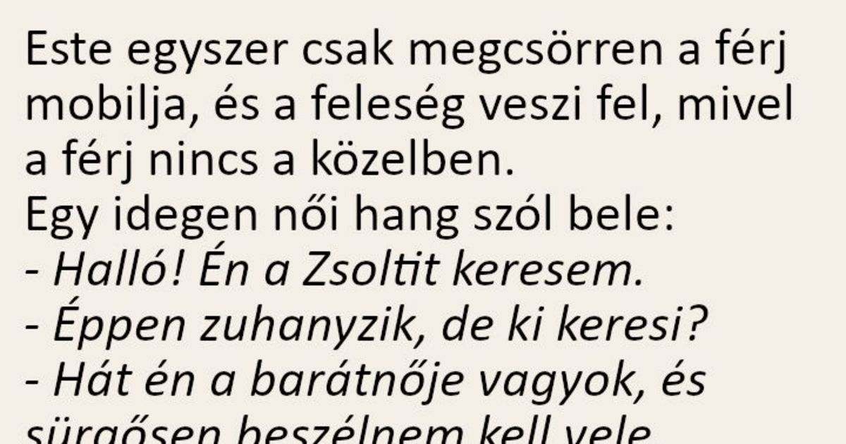 Este egyszer csak megcsörren a férj mobilja, és a feleség veszi fel