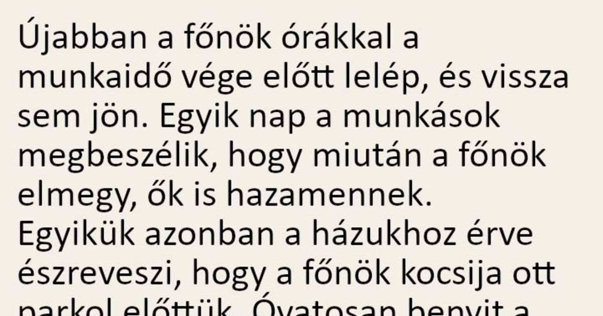 Újabban a főnök órákkal a munkaidő vége előtt lelép